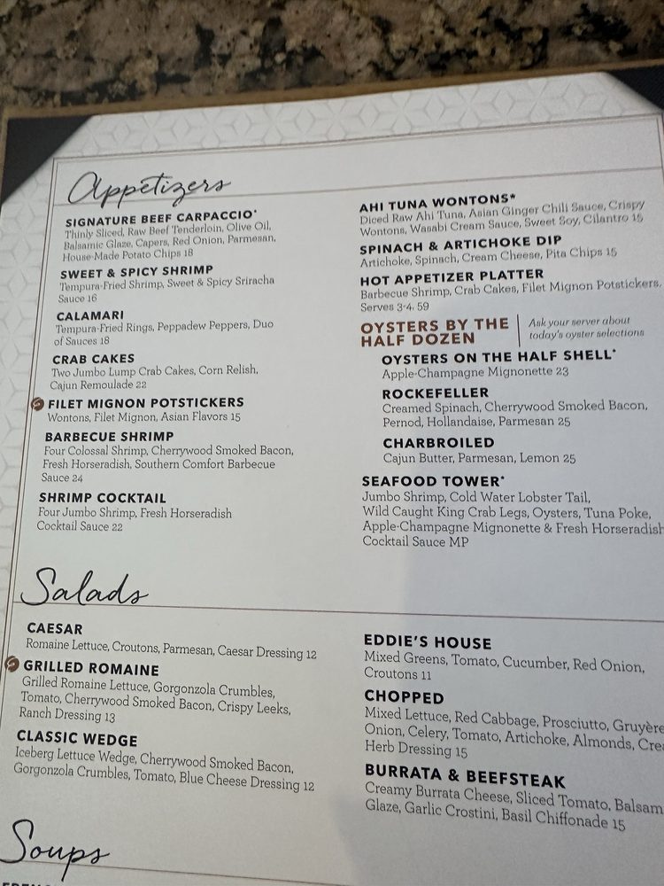 Barbecue Shrimp, Maryland Crab Cakes, Filet Mignon Potstickers. Serves -